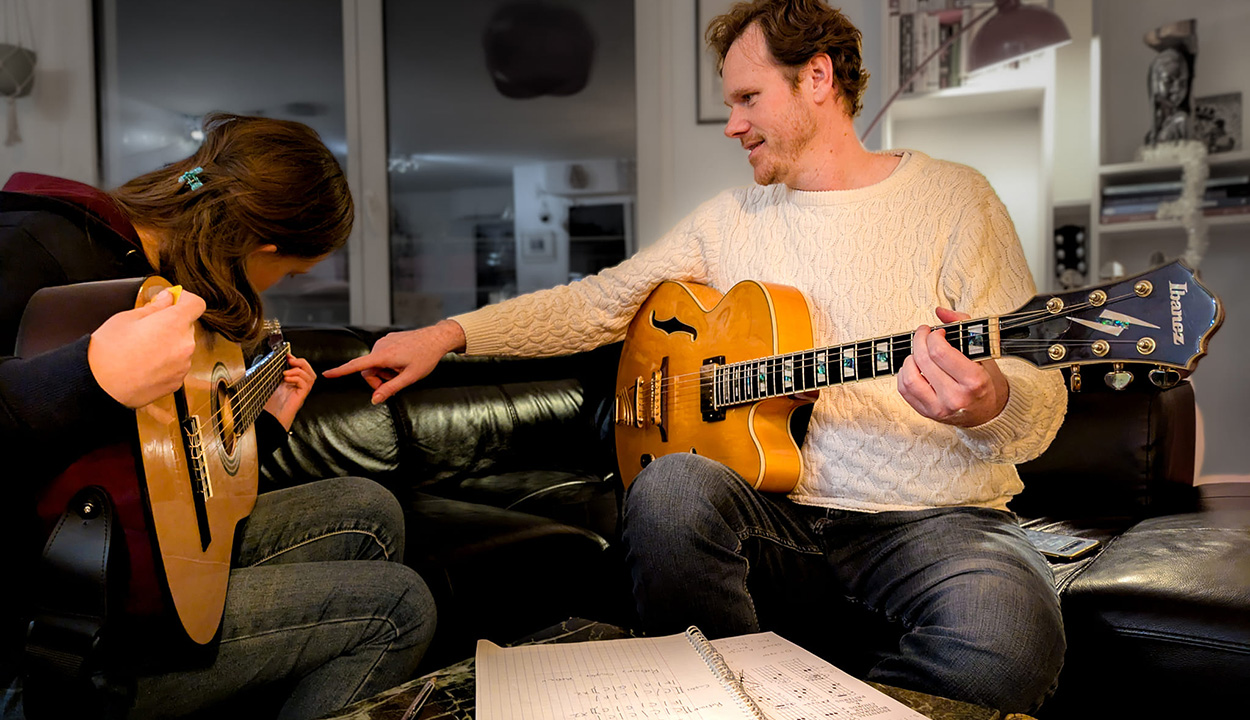 Personalized instruction in guitar, bass, ukulele, Cuban tres, and music theory — in English, Spanish, or French.